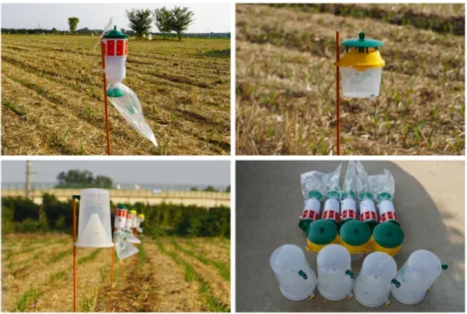 每种配方采用3个浓度梯度,并使用市面上常见的3种蛾类诱捕器。试验点随机排列在不同地块中,定期检查诱捕器中的害虫数量。根据试验结果,我们将确定每种害虫的信息素配方和诱捕器的最优组合。