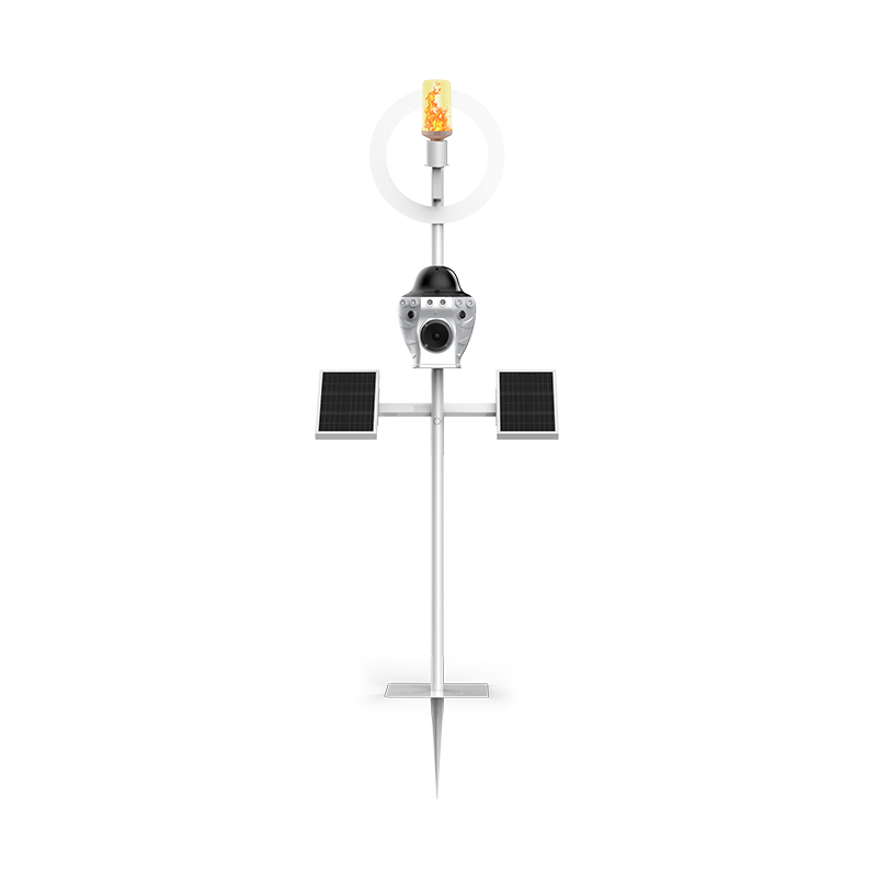 野生动物智能监测防御终端集成了先进的现代传感技术和超声波、集束强光、高仿声效、仿真火焰、神秘光圈等震慑和驱离手段,形成了一体化的监测和防御设备,该设备能有效防止野生动物进入特定区域,如农田、果园、牧场等,同时确保野生动物的安全以维护生态平衡与财产安全。设备通过自动感应动物活动并采用智能战术大脑自动启动对应的震慑措施,以保护动植物资源免受侵害。同时,该设备提供了便捷的远程监控与管理功能,用户可通过移动终端或计算机实时监控现场状况,并及时接收预警信息,确保防护工作的高效与及时。