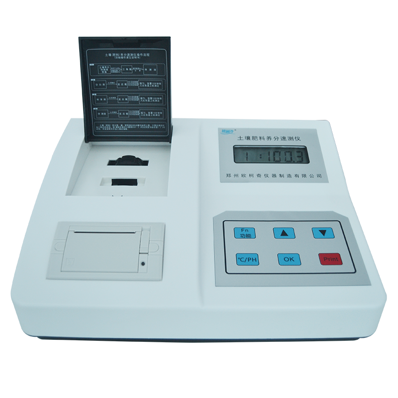 配套齐全:速测仪集药、器、仪为一体,携带方便,相当于一个小型实验室,便于现场测试,流动服务。成品药剂开瓶即用,保证了测试速度快捷。成本低廉,测一个养分(N、P、K)成本只需3元。