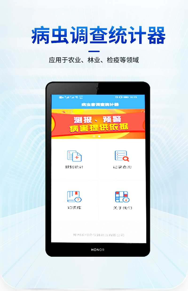 病虫调查统计器主要应用于农业、林业、检疫等领域的病虫预测、预报、预警、研究等工作。设有昆虫名称、采集地点、分类数量等项,可随时录入,存储病虫的调查统计数据资料,并能将统计数据上传至计算机,编辑、生成图表,从而实现统计、分析自动化、标准化。