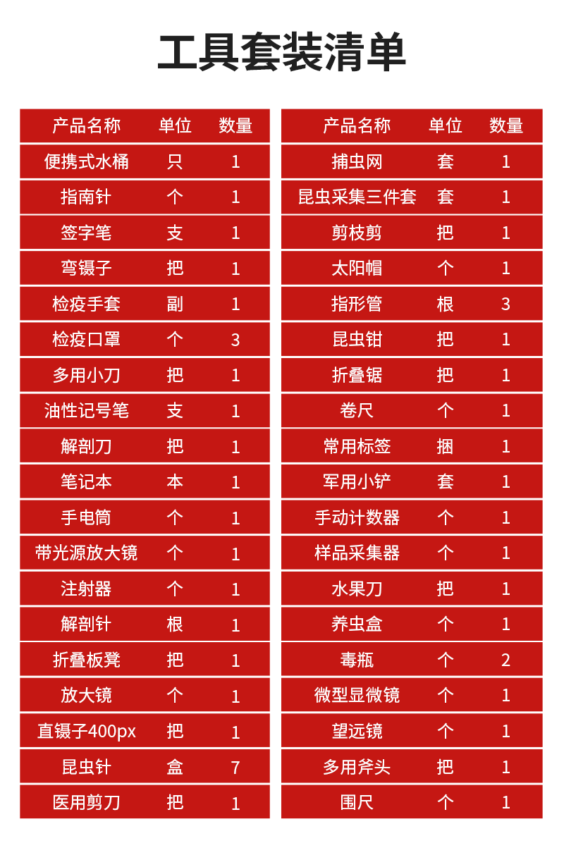 该调查工具箱可以使专门针对病虫调查设计而成的装置,可以有效的进行病虫的检查,对于农作物的生理状况进行有效的监督,可以即时发现是否受到病虫害的侵袭,并且及时做出预测,以便于可以随时做出应对策略,对于庄稼的健康成长,整个季度的丰收具有不可小觑的作用。