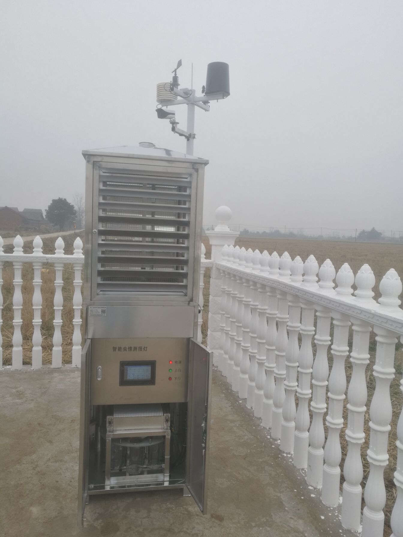 田间小气候观测站为该病虫害防治系统提供气象数据。本项目采用的OK-TQ10田间小气候观测站,可对风速、风向、雨量、空气温度、空气湿度、光照强度、土壤温度、土壤湿度、蒸发量、大气压力等气象要素进行全天候现场监测。可以通过专业配套的数据采集通讯线与计算机进行连接,将数据传输到气象计算机气象数据库中,用于统计分析和处理。