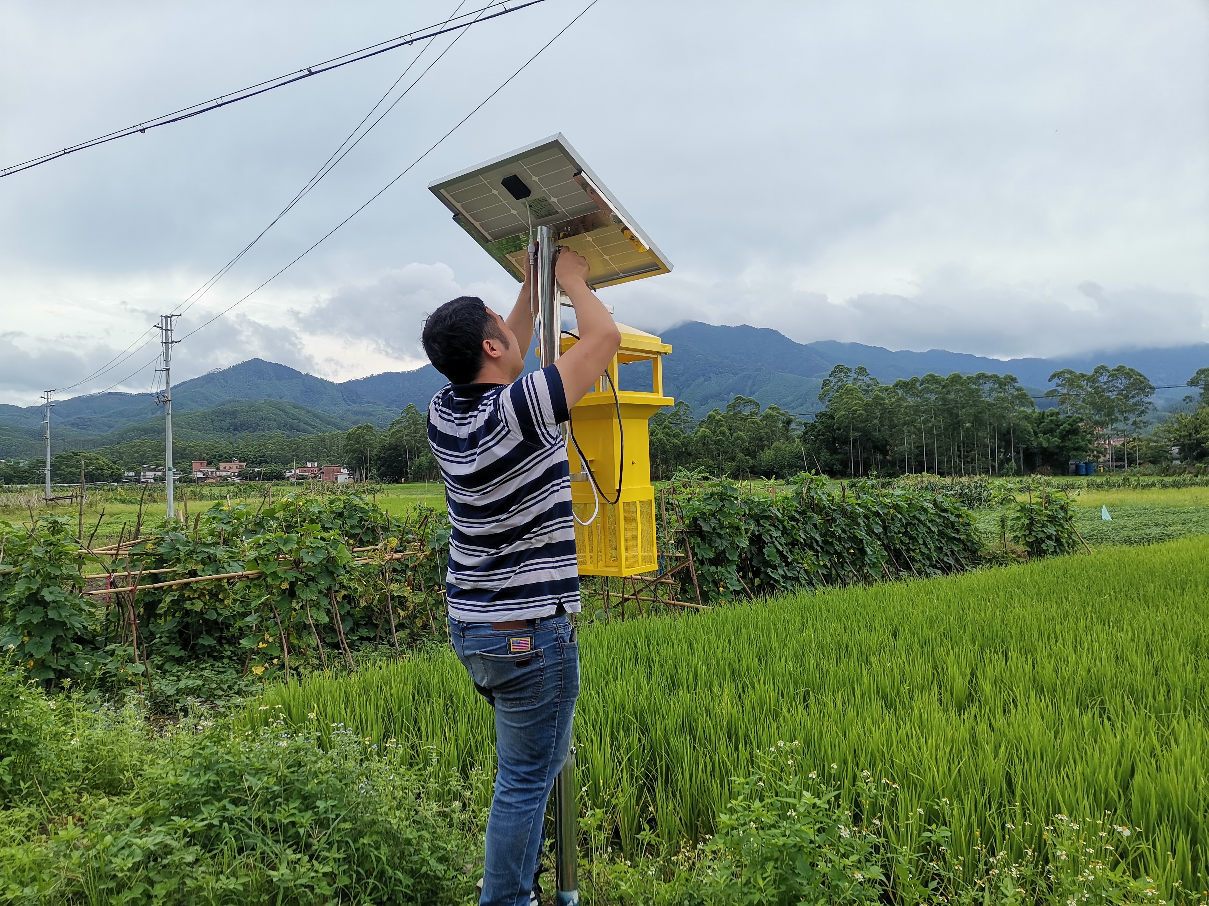 风吸式杀虫灯使用新型LED光源和风吸式杀虫设备,对光源和杀虫方式的改进,极大的提升了茶园害虫灭杀效率;突破传统杀虫灯对小的害虫毫无灭杀能力的局面,大小虫子通杀。