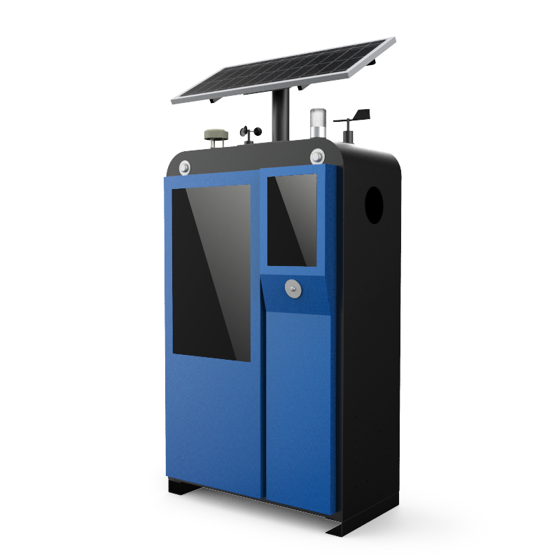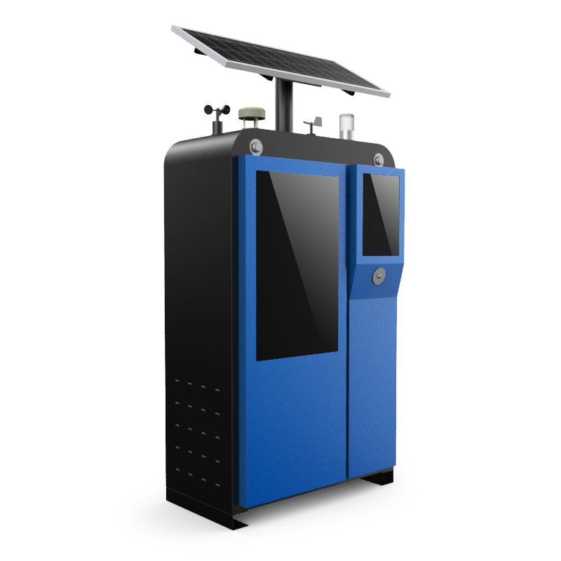 2、环境监测:标配空气温湿度传感器、风速风向传感器,可实时监测现场环境。并可通过一体机的LED显示屏进行实时无间断显示。