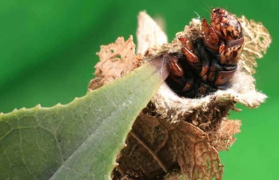 蛹:雄蛹赤褐色,翅芽明显。雌蛹蛆状,赤褐色。