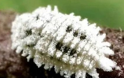 若虫:雌若虫共3龄,雄若虫仅有2龄。一龄椭圆形,淡紫色,长为0.20〜0.39mm,足发达,腹末有2尾毛,后期体被白蜡。二龄转黄至橙黄色,长为0.36〜0.92mm,足消失,背面蜡质形成白色介壳,前端壳点浅褐色。三龄(雌)梨形,淡黄色,腹末三、四节前拱,介壳灰白色,且较宽大。