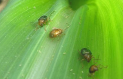 褐足角胸叶甲成虫喜群集于香蕉心叶和蕉果苞片内为害,可利用其假死习性收集害虫集中杀死。
