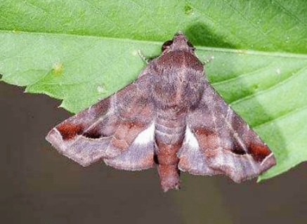 成虫:体长9〜11mm,翅展19〜23mm。头部棕褐色,额区白色,下唇须前伸,黑色,末端灰白色。雄蛾触角基部栉齿状,约占触角全长的1/2,端部丝状。雌蛾触角丝状。体背面黑褐色,胸、腹交界处有一白色“八”字形纹。腹面灰白色,腹部各节两侧均有1个白色小斑点。前翅茶褐色,基横线以内黑褐色,犹如一个黑褐色的大三角形;后翅灰褐色,外缘黑色,近臀角有一白色短横纹。