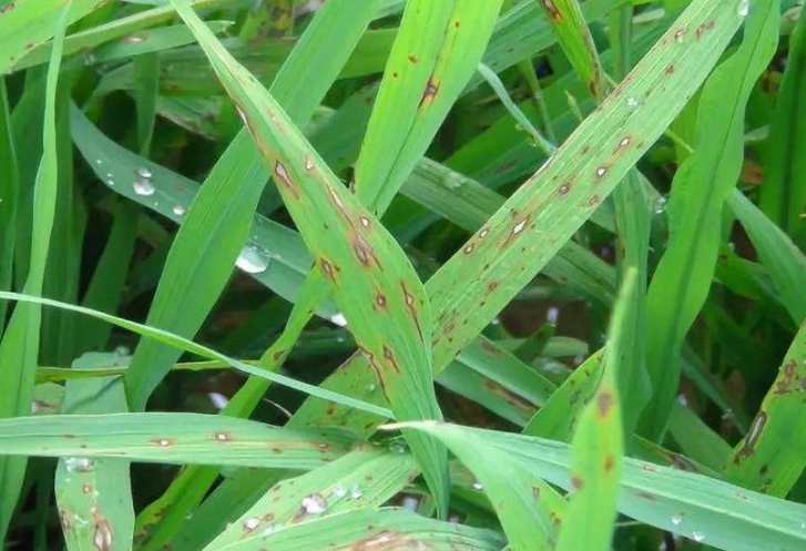 (4)褐点型:病斑呈褐色小斑点,局限于叶脉之间,多发生于抗病品种或稻株下部老叶上,无霉层。